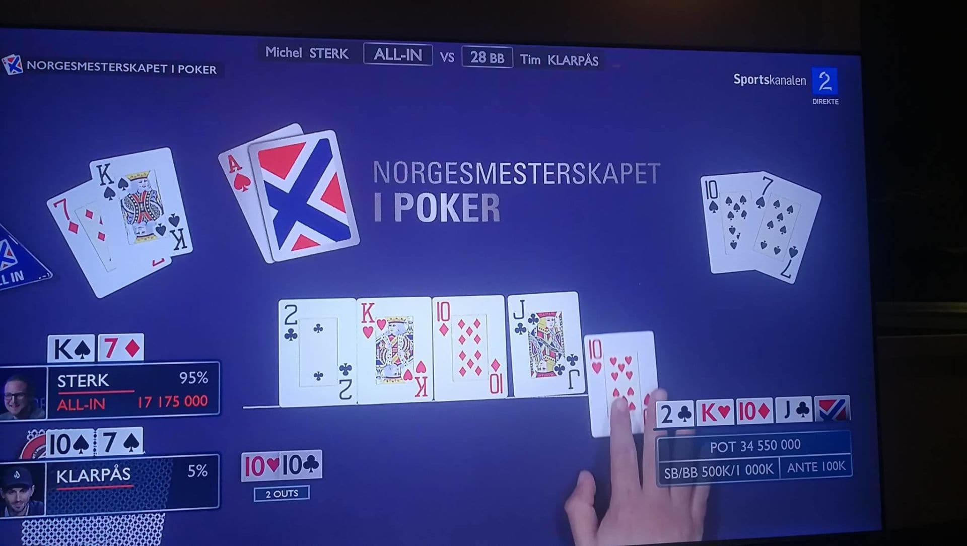 Gratulerer, Tim Klarpås, med NM-tittelen i Main Event! Vinnerhånd 10-7. #2poker pic.twitter.com/2HMv9Sx31e