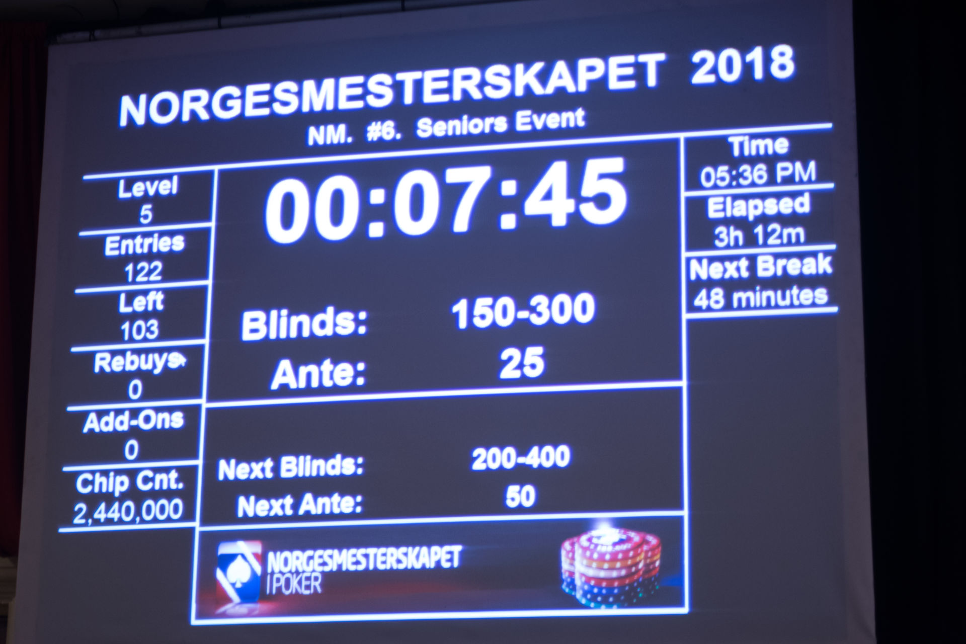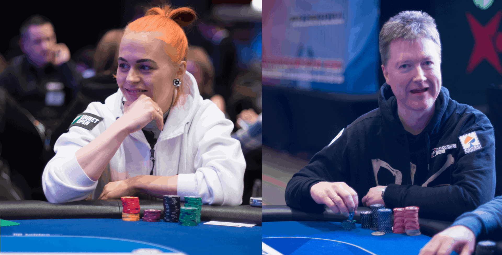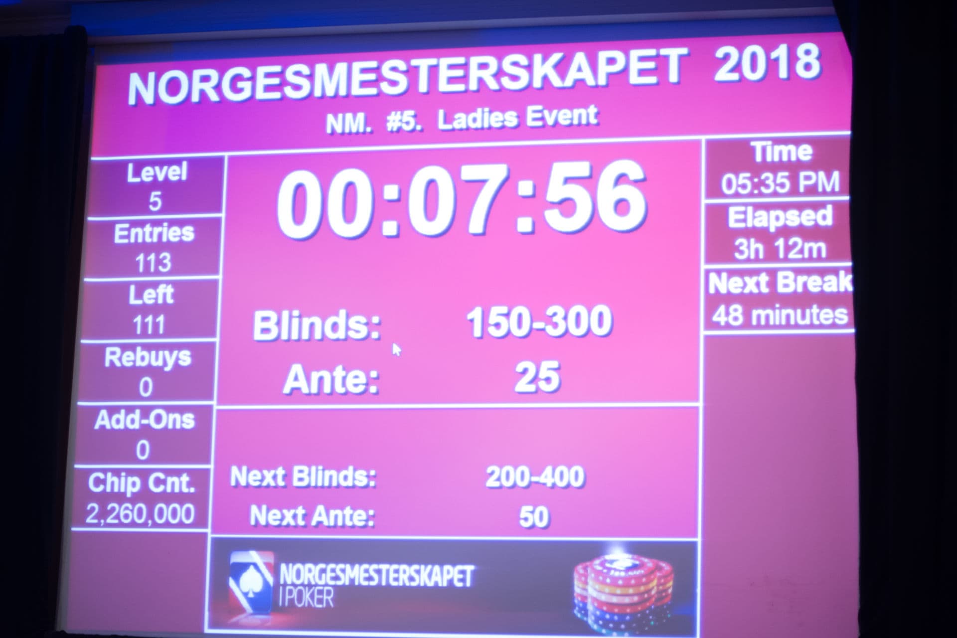 Stemningen er bokstavelig talt til å ta og føle på og lydnivået løfter nesten taket. Det skravles, vitses, og flires jevnt mellom de seriøse pokerhendene som spilles. Men det er frem til nå, for etter middagen og utover kan det fort bli mer intenst mellom spillerne når blindene er dyrere.