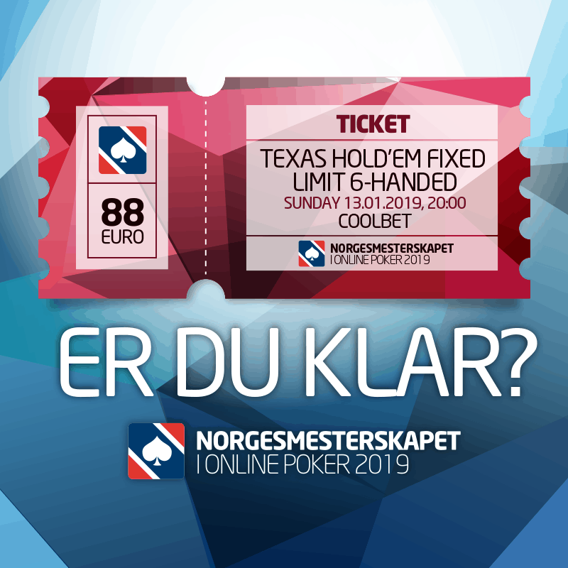 Søndag skal Coolbet kåre en norgesmester i 6-handed Fixed Limit Hold ’em. Turneringen kostet 88 euro i innkjøp.