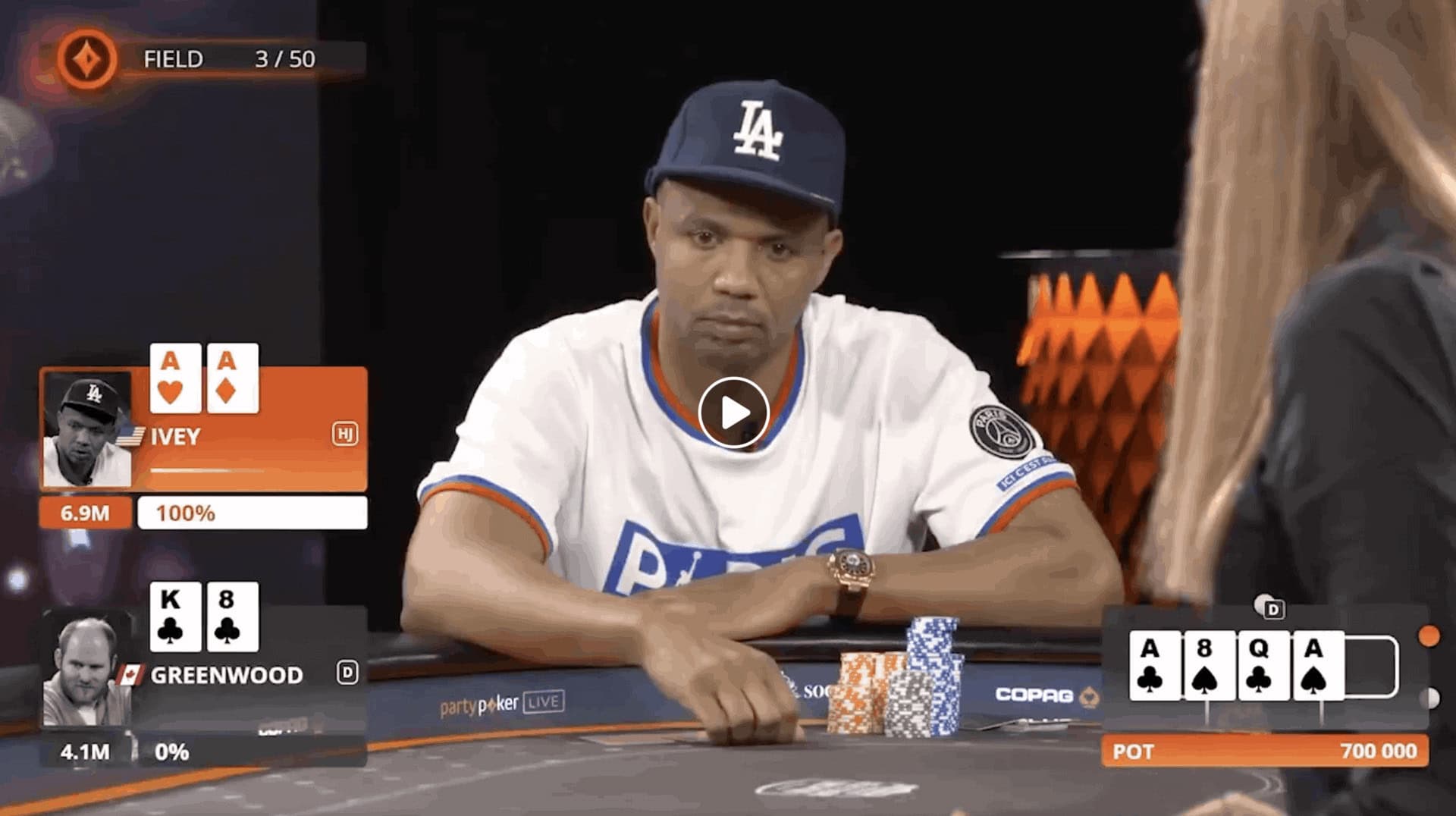 Vi må hygge oss litt, også i disse krisetider hvor det ikke er et live pokerlag å oppdrive. Like før koronaepidemien for alvor stengte ned store deler av verden – inkludert pokerlagene – ble Partypoker Millions spilt i Sochi, Russland. Der vant den tidobelte braceletvinneren Phil Ivey sin første turnering på to år ( $50k Short Deck) og fikk 856 050 for dette. Han cashet i totalt tre av syv eventer og fikk med seg i overkant av 1,4 millioner dollar fra turneringsserien. Vi får håpe han fikk beholde deler av eller alle premiepengene selv.