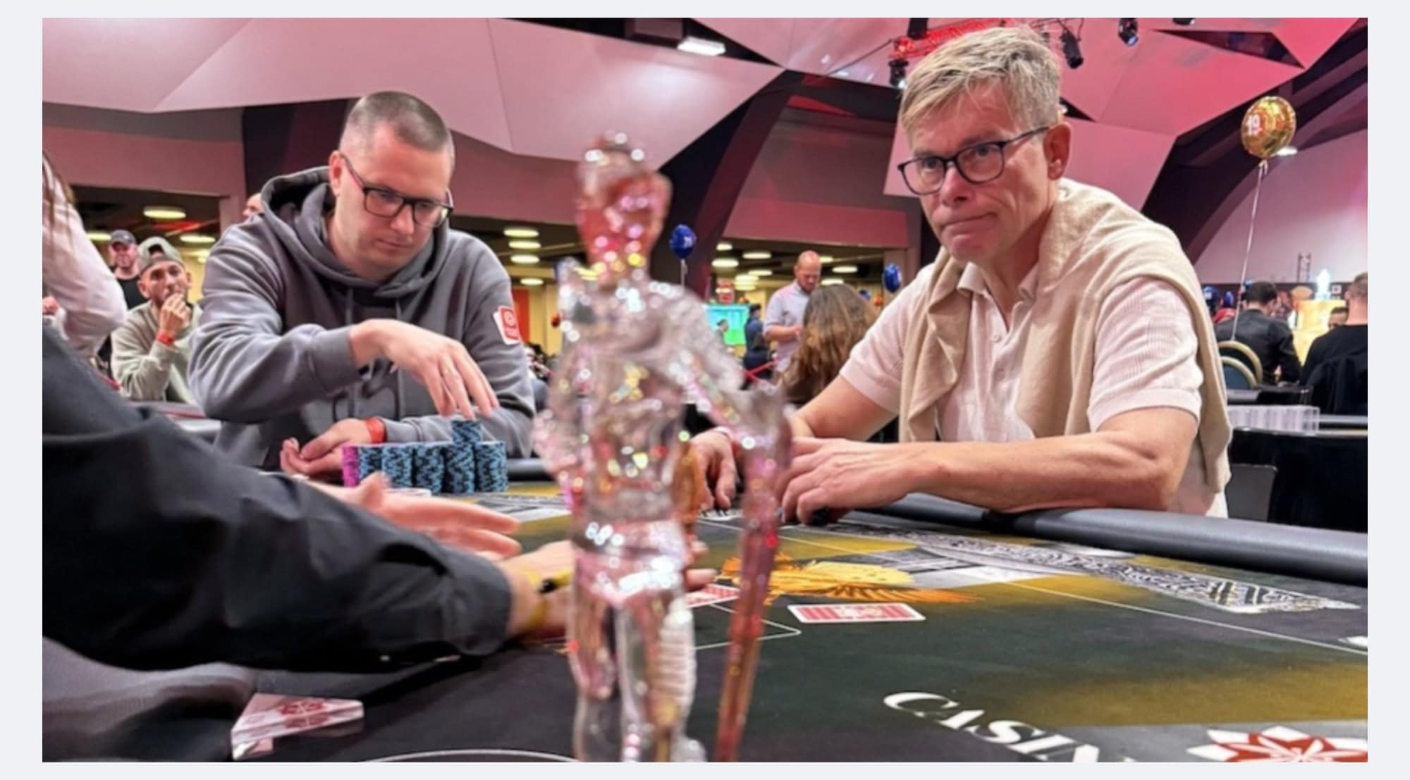 På bildet over er Lie heads up med Latvias Arturs Daugis, som vant turneringen og 96 900 euro. Treveis ble det gjort en deal der de bare spilte om tittelen til slutt. Ludovic Morda fikk 73 050 euro på tredjeplass.