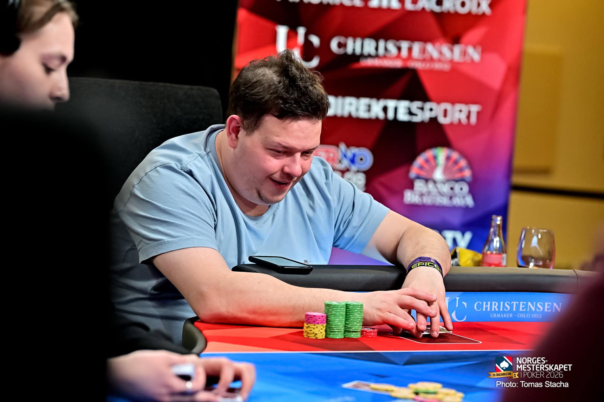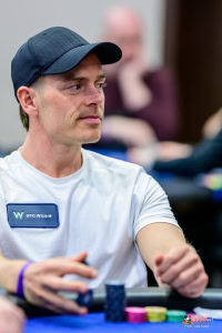 Han ble tidlig lagt merke til på chipcounten på dag 1 B torsdag og kommentert av TV-kommentatorene.