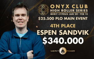 Espen Smørholm Sandvik er blant de siste syv gjenlevende i $25k PLO Main Event i Onyx High Roller Series. Med det fortsetter de norske fremgangene i highroller-serien på Kypros, etter at Mads Åmot vant en av åpningsturneringene i mesterskapet. Sandvik er en meget vel ansett allround spiller internasjonalt og har blant annet en WSOP-tittel på [Les mer >>]