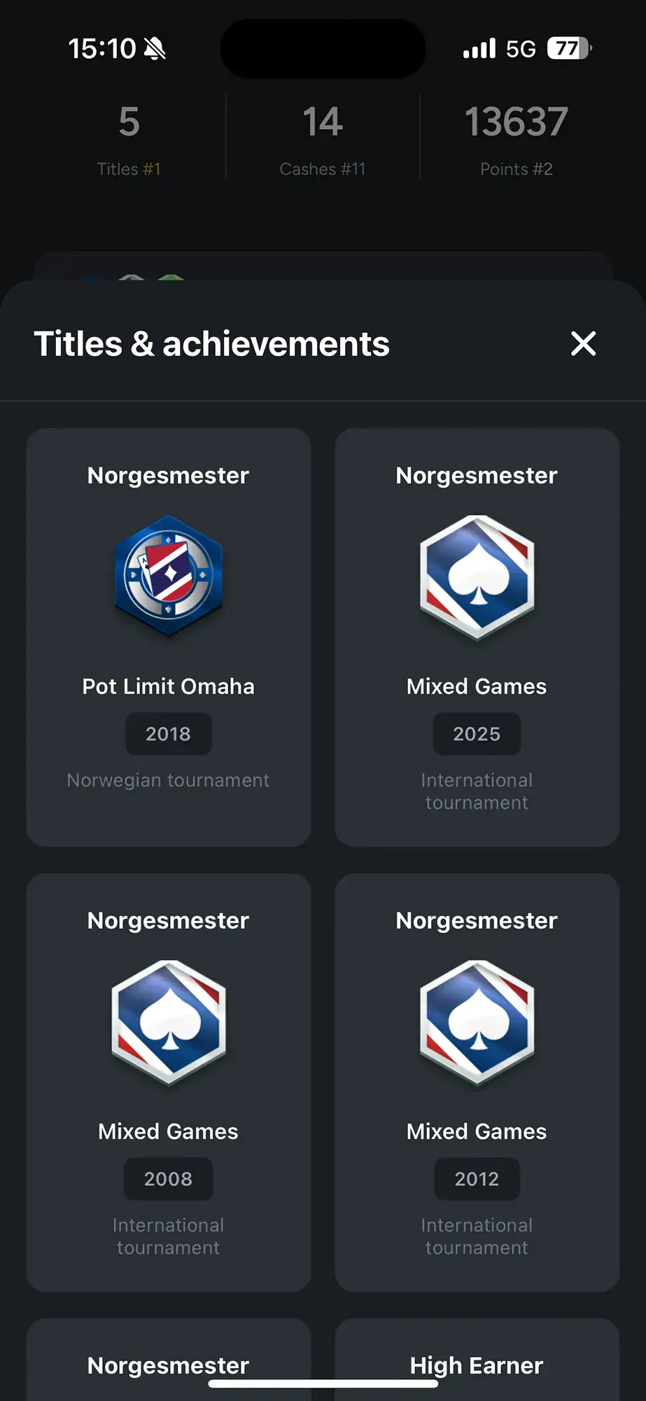 Du trenger ikke en bruker for å begynne å utforske appen. I det som beskrives som en “browse mode” kan pokerinteresserte søke opp spillere som har deltatt i NM i utlandet, studere profiler med historikk og titler, og favorittmarkere navn de ønsker å følge ekstra tett.